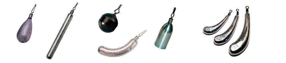 Для отводного подойдут разные типы грузил. Чаще всего используют грузила с вертлюжком в виде вытянутой капли или «банана». Считается, что они лучше проходят незначительные зацепы, камни и леска меньше перетирается, а их аэродинамика вполне неплохо подходит для дальнего заброса.