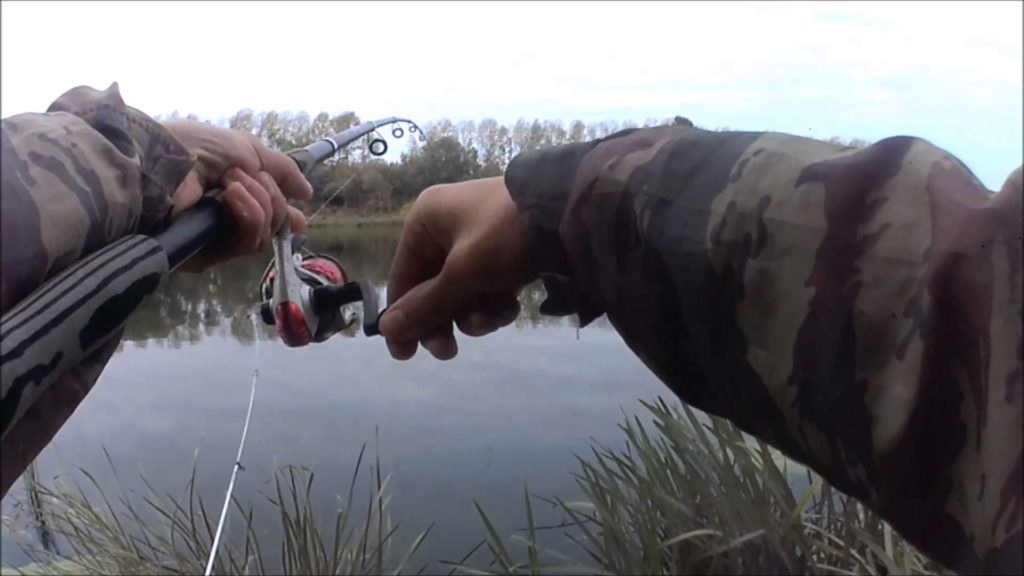 - Слегка натянуть леску, сделав оборот рукоятью катушки.