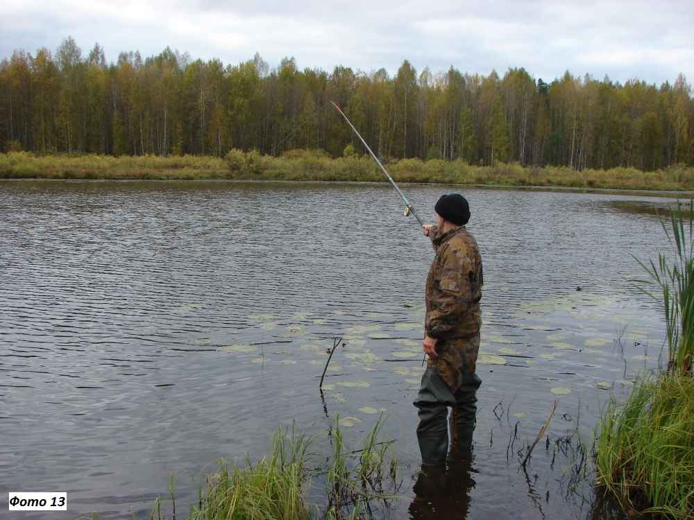 Самый простой вариант – это забрасывать снасть либо за полосу прибрежной водной растительности (фото 13), либо аккуратно рыбачить в «окнах» среди травяного ковра