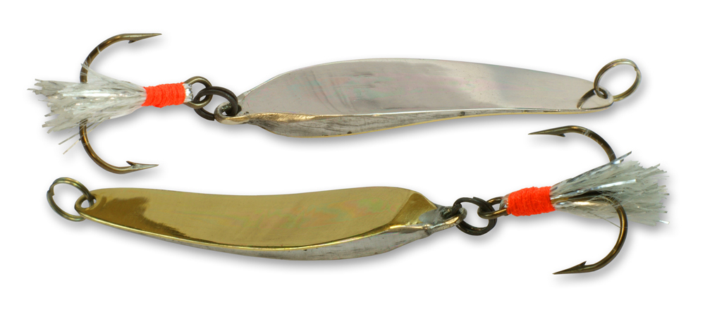 Кому-то больше нравится приобретать в магазине, к примеру, Lindroos с цепочкой или подвесным тройником. Кто-то отдаёт предпочтение самодельным. Они могут быть сделаны «лодочкой», «ромбиком», «листиком» или в форме шпалы. Длина блесны для зимней рыбалки составляет от 5 до 8 сантиметров. Оптимальный вес – 5–12 грамм. Если планируется рыбалка в местах, где есть ямы, то стоит запастись блёснами побольше: 12 см длиной и 10–15 грамм весом. Самые уловистые зимние блесны – из мельхиора и латуни.
