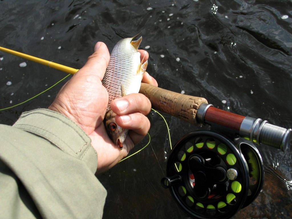 Нахлыстом удобнее всего ловить плотву в тихую и теплую погоду, особенно на вечерней зорьке, когда рыба поднимается к поверхности полакомиться упавшими в воду насекомыми