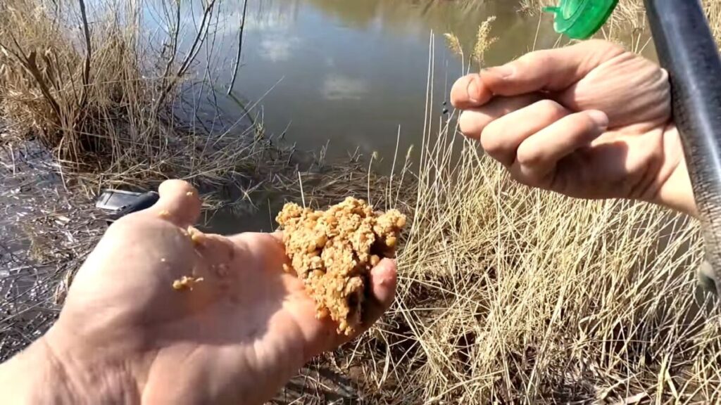 Второй вариант применяют при отсутствии достаточного количества кормового мотыля или при ловле на течении, когда нужно, чтобы частички корма разносились водным потоком. В этом случае смесь может быть разной, от покупной до самодельной. Вот один из рецептов: