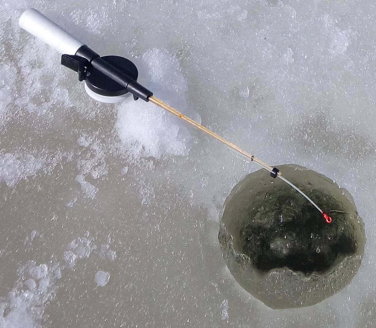 Это короткая удочка не более 0,3-0,4 м в длину. Глубина в лунках, как правило, небольшая, при ловле на блесну использование катушки необязательно. Если же будет использоваться мормышка, то удобнее удочка-балалайка, у которой эта снасть встроена. Удильники можно расставить по всем лункам в качестве пассивных приспособлений (без движения насадки). Хотя ротан охотнее идет на приманку, которая поигрывает в воде, на стоячую тоже реагирует.