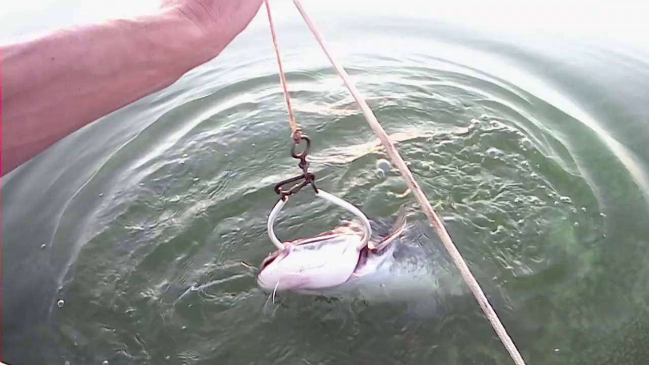 Ловля Сома на Реках, показала, что очень удачным является использование Самодельной Снасти, изготовленной по типу незацепляйки из поролона. Только вместо куска поролона насаживается часть мелкой рыбки. Она прикручивается проволокой между крючками.