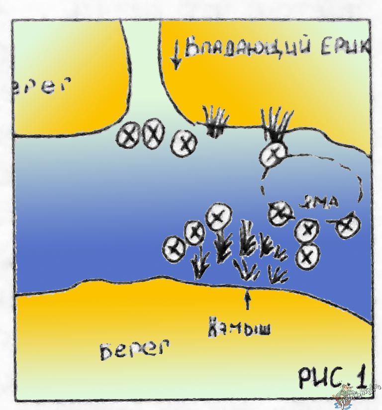 Нас же интересуют экземпляры, расположившиеся по краям зимовальных ям. Именно там будем располагать свои снасти и ловить щуку на жерлицы, снарядив их свежим живцом.