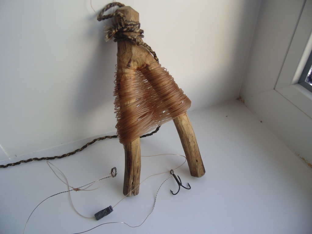 На одном расположена оснастка, а второй крепит его к берегу или чему-то монументальному на берегу, что бы избежать утаскивания щукой «поплавка», а за одно и и всех снастей.