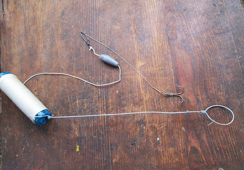 Живцовую ловлю со спиннингом на дальней дистанции я разделяю на два вида: с использованием поплавка в живцовой оснастке и без него. Начну с более простого варианта – без поплавка. Поскольку при ловле на дальней дистанции нацелена в основном на щуку, то оснастка у меня смонтирована следующим образом: на основной леске (или шнуре находится скользящий груз, он упирается внизу в вертлюжок с карабином, к которому крепится поводок с двойным или тройным крючком (фото 1).