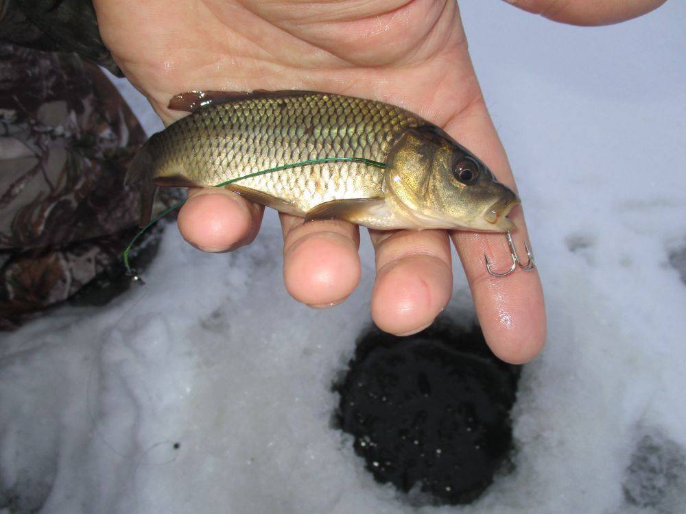 Продажа осуществляется круглые сутки, к тому же расположен рыборазвод как раз по пути к пруду, который мы посещаем зимой регулярно. Поэтому отовариваемся там довольно часто. Но вот в прошлом году, заехав в рыбхоз в самом начале ледового сезона, мы узнали, что карасики не уродились, поэтому в продаже их очень мало. Но зато есть другая молодь – карпики чешуйчатые и зеркальные, толстолобики, белые амуры. Опыта применения этих живцов у нас пока не очень много, но несколько прошлогодних выездов подкинули много интересной информации к размышлению.