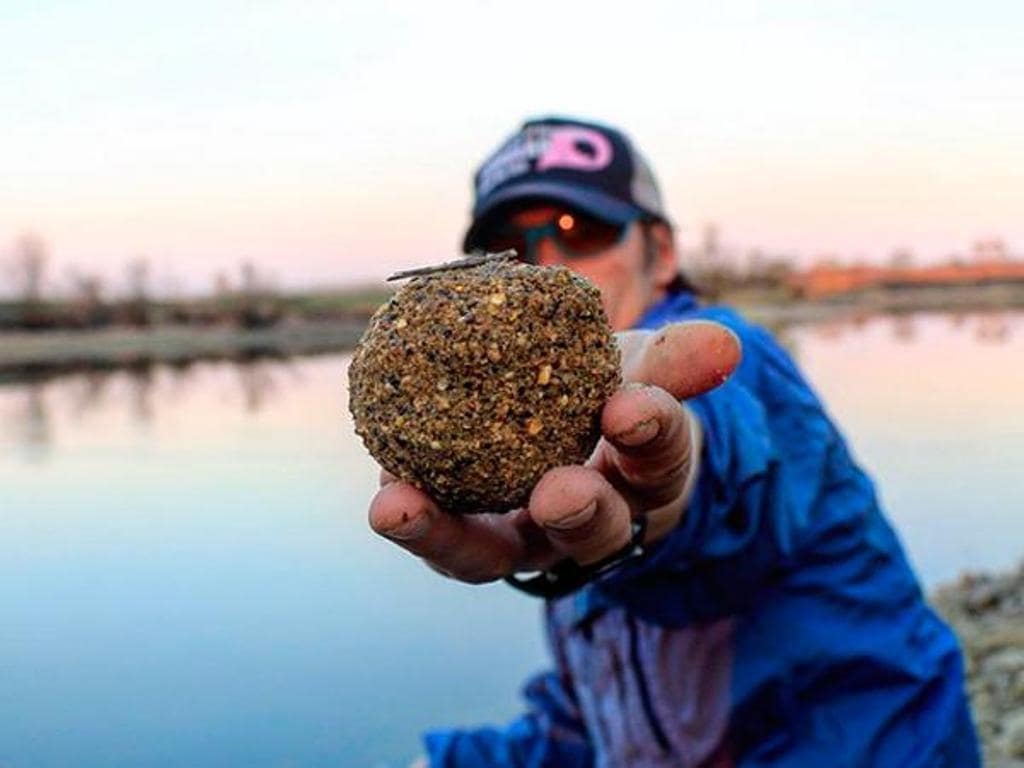 Приготавливать корм следует в большой посуде, постепенно смешивая все ингредиенты, добавляя к ним клейкую часть и формируя небольшие шарики-бомбочки, которые можно будет закинуть на нужное расстояние.