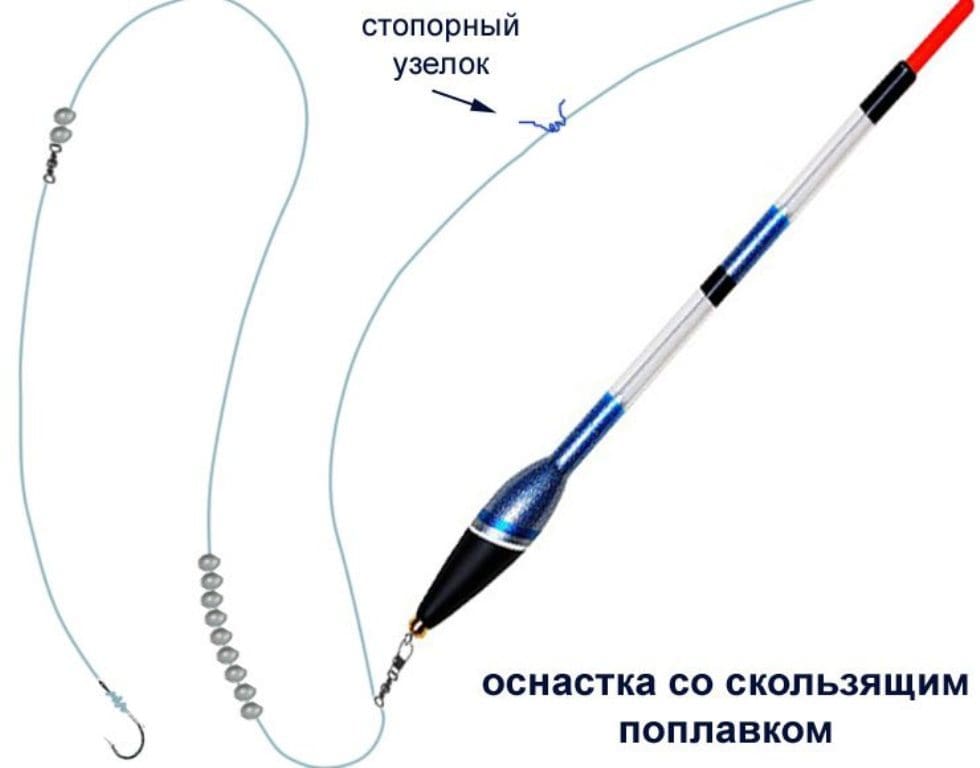 - скользящая – для погружения свыше трех метров, т.е. больше длины бланка. Леска с грузиками легко скользит сквозь ушко, далее стопорный узел остановит движение;