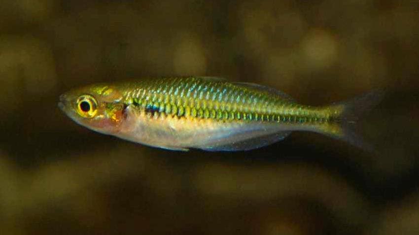 Очень красивая рыбка. Чешуя этой радужницы переливается бликами от голубого до зелёного, а в момент нереста приобретает золотистый оттенок.