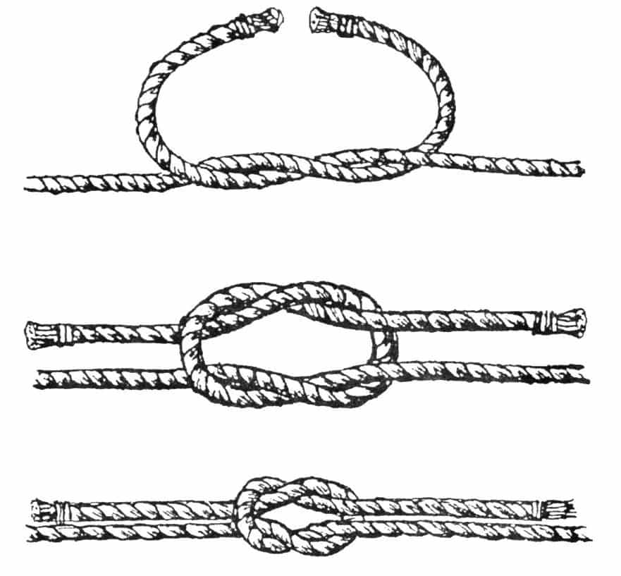 Прямой узел – древнейший морской узел, также имеющий название геркулесовый. Он используется, когда нужно связать два одинаковых троса.