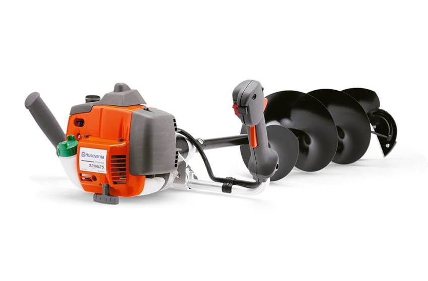Мотобур для земли оснащен мотором мощностью 1,46 кВт и объемом 51,7 см3. Самая компактная модель рейтинга оборудована топливным баком на 0,98 л. Конструкция функционирует с бурами диаметром 60 – 250 мм. Шнек с параметром 200 мм входит в комплект. Все элементы устройства крепятся на раме. Для запуска наверху предусмотрен трос, а на рукоятке расположен рычаг газа в форме курка. Встроенный амортизатор снижает уровень нагрузки.