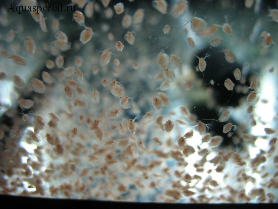 Живые рачки продают на рынке в огромных тазах. Присмотревшись, можно увидеть бесконечное движение мелких дафний, циклопа или артемии. Продается вода с рачками литрами. Прежде чем опустить рачков в аквариум, необходимо пропустить раствор с ними через сачок с мелкой ячейкой, а затем промыть их проточной водой.