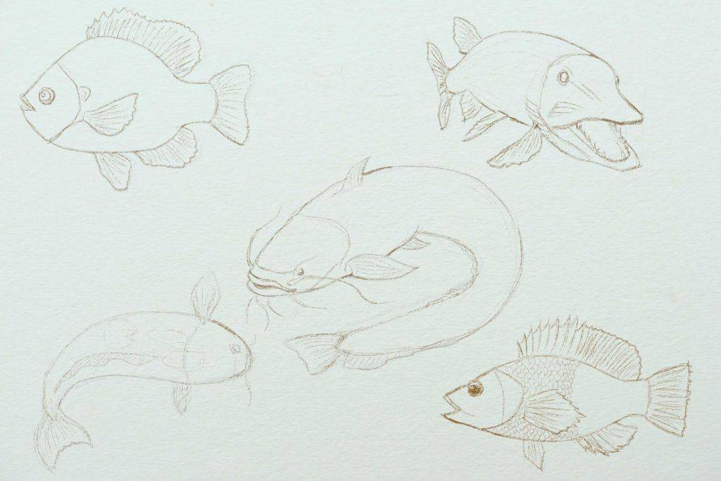 Ваша работа будет выглядеть более натурально если вы правильно разместите плавники. У всех типичных морских и речных рыб, они располагаются следующим образом: