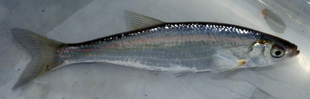 Характерен заостренный кожистый киль без чешуи, расположенный между брюшным и удлиненным килевым плавником. В боковой линии от 45 до 55 чешуек, а достаточное количество жаберных тычинок от 17 до 22 позволяют фильтровать фитопланктон.