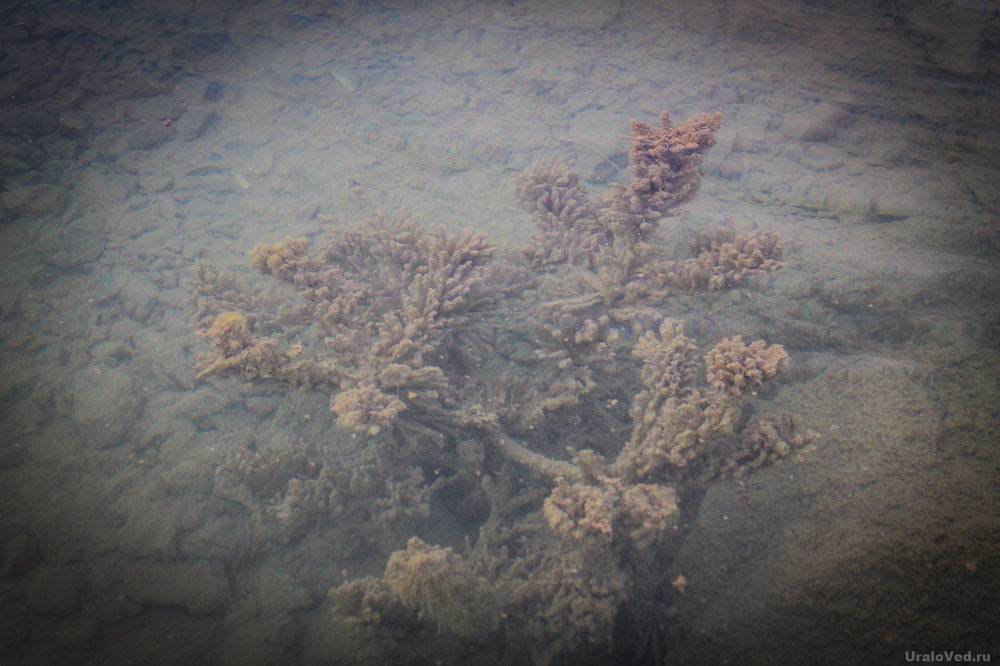 Смотрите, как хорошо видны пушистые водоросли под водой.