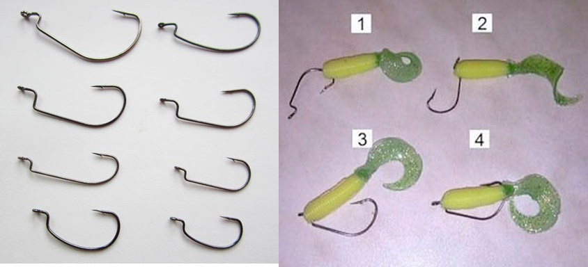 Форма крючков разнообразна и зависит от задачи, места и типа ловли, вида “резины”.