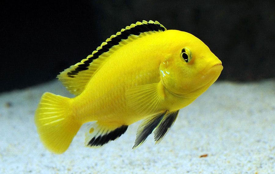 с боков. Основной окрас от лимонного до желто-красного, плавники — от