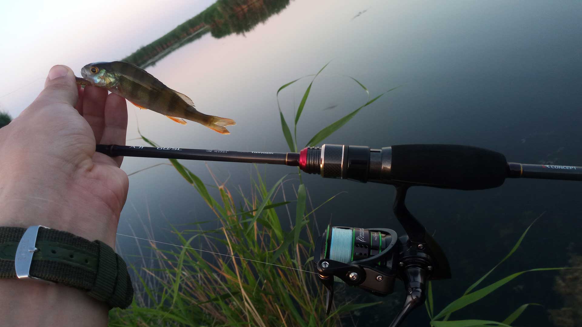 - Джиг, включая все его разновидности по используемым весам (микроджиг и наноджиг) – одна из лучших тактик ловли окуня. Ступенчатая проводка с отстукиванием по дну, различной амплитудой, разной длиной ступеньки и с разными паузами. Даже пассивный окунь, порой, отзывается лучше всего на джиг. В качестве приманки используются различный силикон: слаги (имитация червей), твистеры и виброхвосты, различные креатуры имитирующие ракообразных или насекомых. Также окунь может неплохо отзываться на поролоновые приманки и так называемые мандулы.
