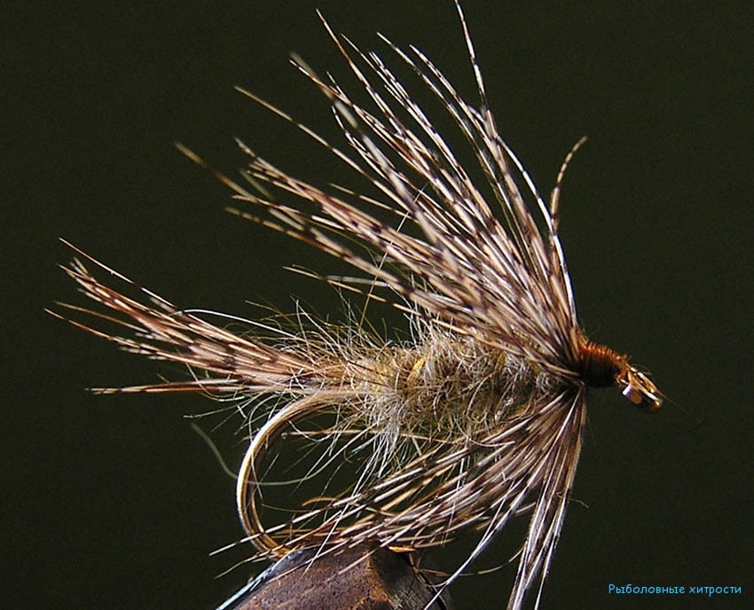 March Brown выполнена из пера золотого фазана — самая популярная мушка для ловли хариуса, используется рыбаками уже около 500 лет, и за все это время не перестают удивлять своими уловами.