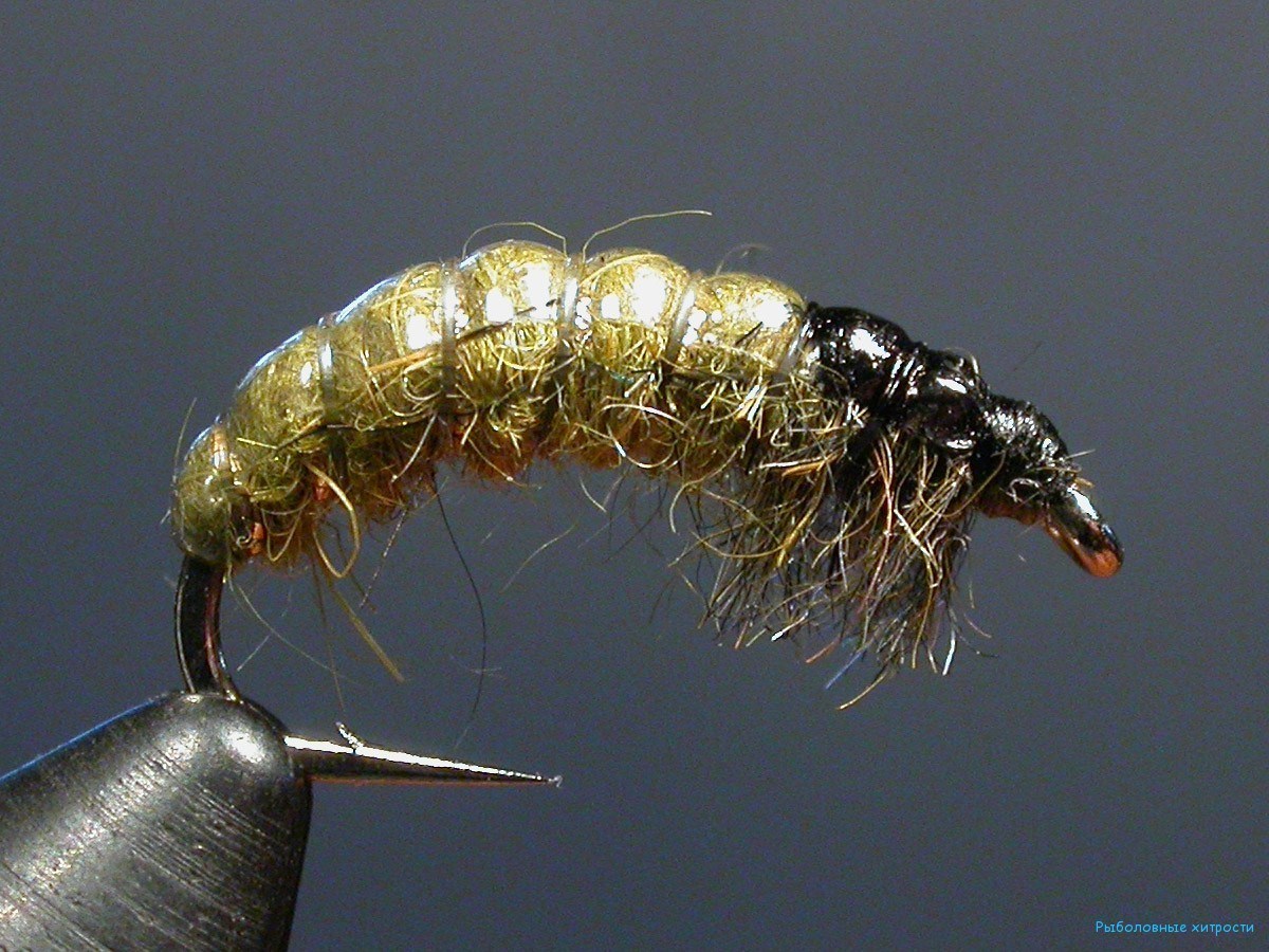 Эта нимфа моделирует ручейника и очень реалистична. Если же во время первого удара рыба уколется об жало крючка, и выплюнет приманку, то с очень большой вероятностью что на следующей проводке хариус снова будет атаковать эту нимфу так как она выглядит очень аппетитно.