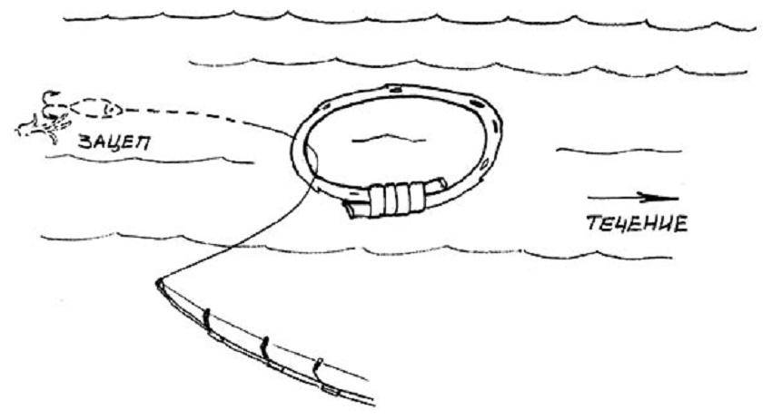 И вид, и принцип действия лодочной «кошки» отличаются от таковых «кошки» береговой. Лодочная «кошка» представляет собой свинцовое кольцо, к которому прикреплены несколько тройников. Через кольцо пропускается основная леска. Такой отцеп работает и по принципу отбойника, и по принципу уловителя, а в случае чего с его помощью можно вытащить из воды сам зацеп.