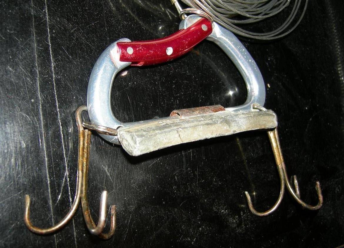 Простейшее приспособление, которое используется с лодки. Представляет собой карабин большого размера. На нем закреплены полосы из металлических колец. На их концах могут фиксироваться округлые свинцовые грузила либо мощные тройные крючки с обломанными жалами.