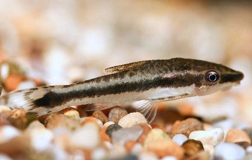 На рыле есть пара очень мелких ноздрей, которые он используют для поисков пищи. Так же есть два миниатюрных усика, которые играют роль сенсорных органов. Окрас тела варьируется от серо-зеленого до серо-коричневого цвета. Брюшко светлое. Спинка темно-серая с зеленоватым оттенком. Вдоль всего тела проходит черная полоса, которая начинается от рыла и заканчивается у основания хвостового плавника вытянутым темным пятном. Все плавники прозрачные, бесцветные и только хвостовой с темными пятнами.