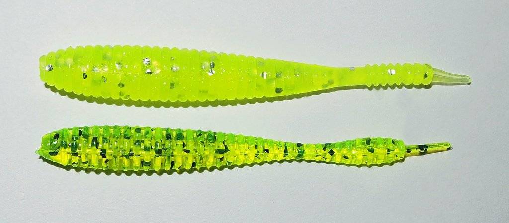 Эта приманка представляет собой нечто вытянутое без выпуклостей и вмятин. Походит на несформировавшегося малька. Применяется для ловли хищников в водоёмах с обильной растительностью. Чтобы избежать зацепов, на крючок насаживается без огрузки. По этой же причине для жала крючка на приманке предусмотрено углубление. При игре имитирует любимый корм щуки, судака и окуня.