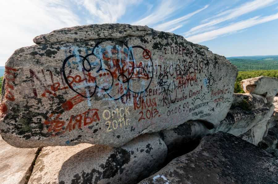 Не все лезут на самые вершины и в самые труднодоступные места. Но массовое присутствие людей неизбежно оставляет отпечаток на чистоте и экологии. Кое-где валяется мусор, пластиковые бутылки и мешки (особенно между камнями и в расщелинах). Ну и, конечно, многочисленные надписи на камнях, типа: «Я тут был».
