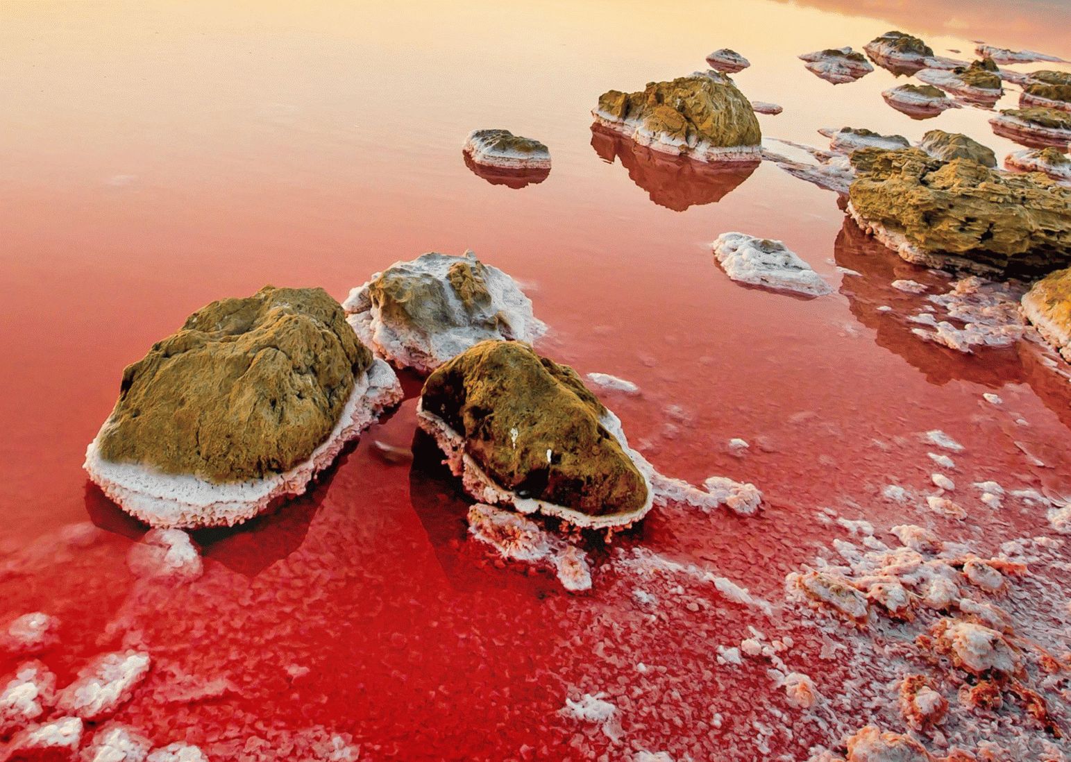 Важно отметить, что время от времени водоем приобретает не розовый, а оранжевый цвет, а при цветении водорослей распространяет характерный запах фиалки