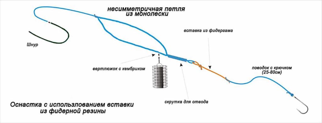 Асимметричная петля для фидера, особенности и способ вязки
