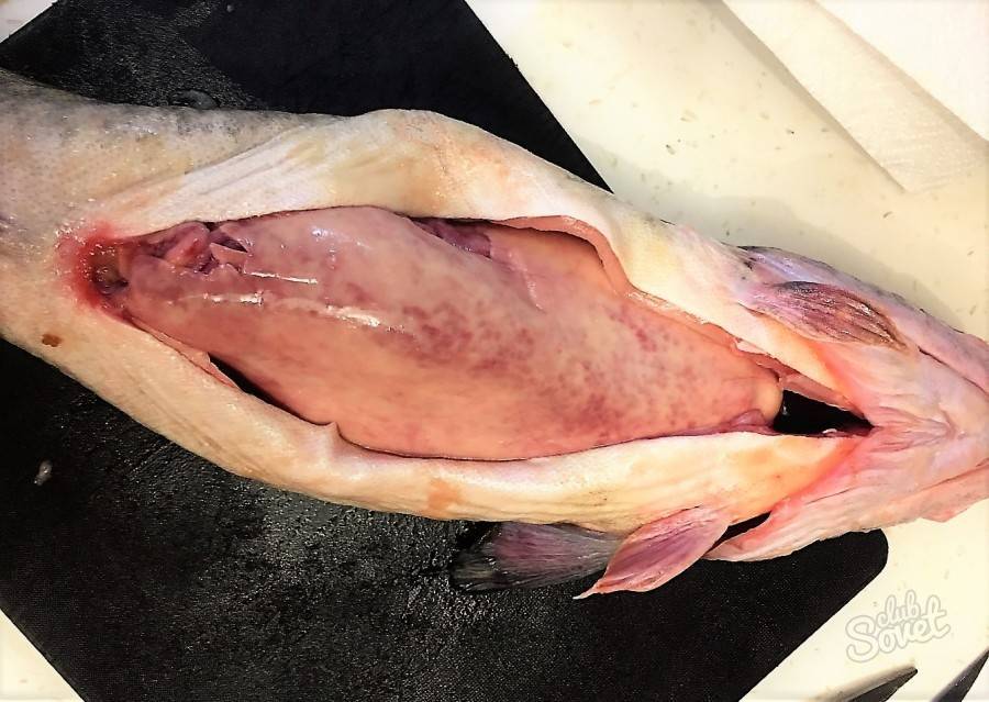 Осмотрите ее на наличие остатков желчного пузыря и прочих потрохов.