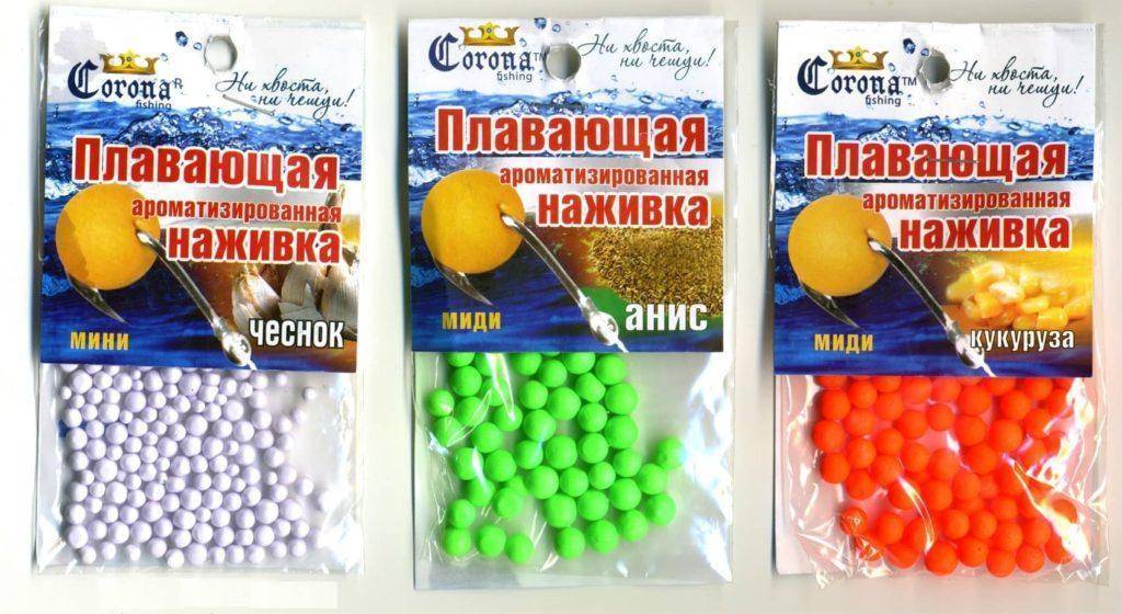 Рыболовные магазины предлагают большой выбор приманок при ловле исключительно на пенопласт. Готовые и фасованные пенопластовые шарики окрашены в разнообразные цвета и источают различные ароматы