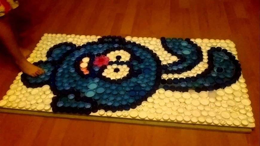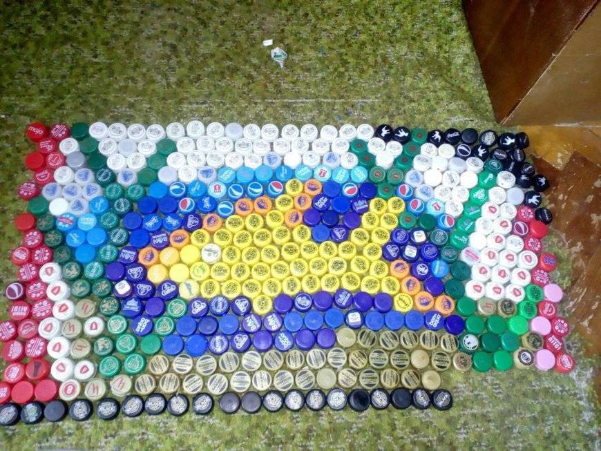 - на полу или столе разложить крышки под задуманный рисунок;