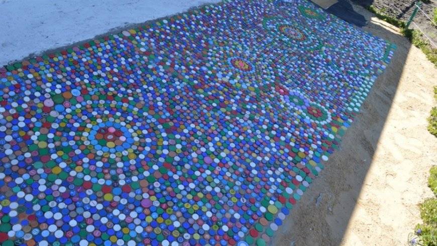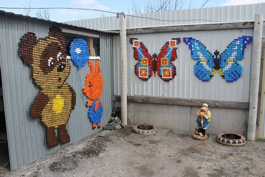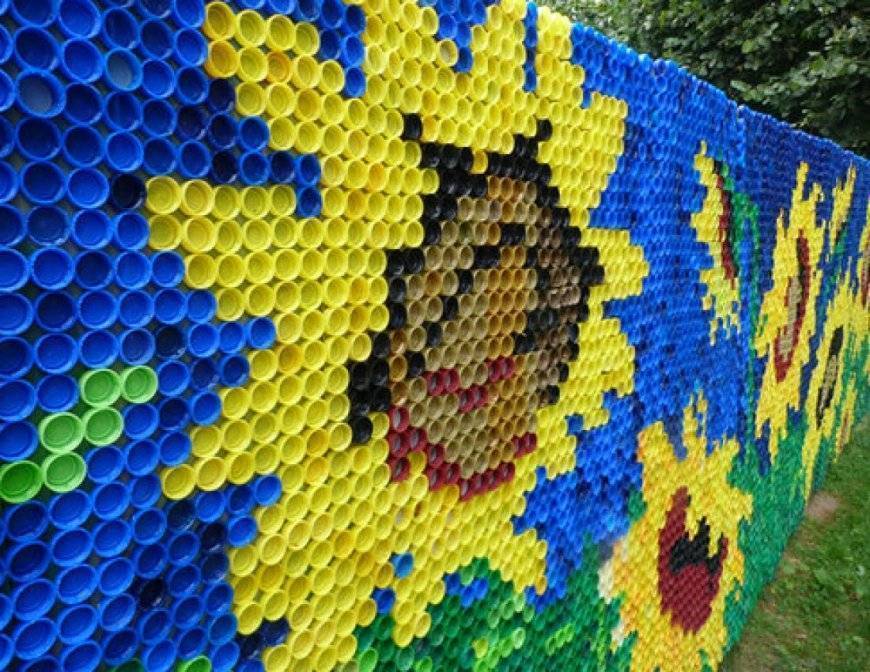 Из крышек пластиковых бутылок для дачи выполняют мозаичные панно, аппликации и другие подделки. Летом дачники проводят на своих участках максимум времени, можно вечерами украсить забор, подготовить занавеску для веранды, реставрировать дорожку между грядками. Ниже подробно рассмотрим, что можно сделать из крышек от пластиковых бутылок.