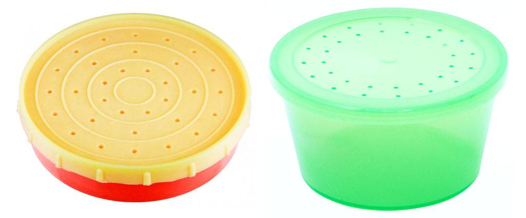 Самый простой вариант – подобрать пластиковую баночку или коробочку из-под каких-то лекарств или биодобавок. В крышке делают несколько десятков отверстий. Просто прокалывать шилом – не всегда удачное решение. Некоторые пластики имеют свойство пружинить и размер итоговых отверстий заметно сузится. Лучше нагревать маленький гвоздик на газу, и удерживая его пассатижами, проплавлять отверстия.