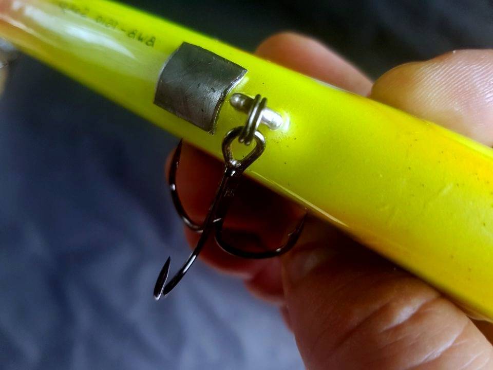 Штатные, или заводские крючки бывают достаточно легкими. Самая простая регулировка воблера — переустановка тройников. Для замены выбирают крючки из более тяжелого металла и проволоки большего диаметра.
