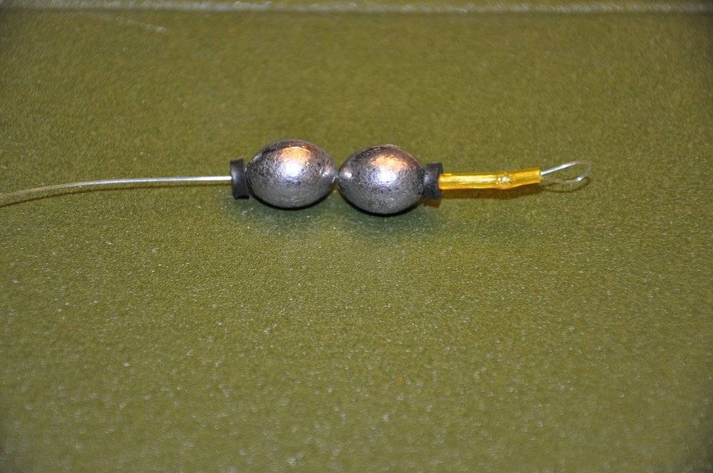 При оснастке жерлиц рекомендую использовать такой размер грузила-оливки, чтобы грузило свободно, а не внатяг входило в паз катушки. Это облегчит Вам разматывание начала снасти, при ее установке. Необходимый вес, добирается количеством оливок.