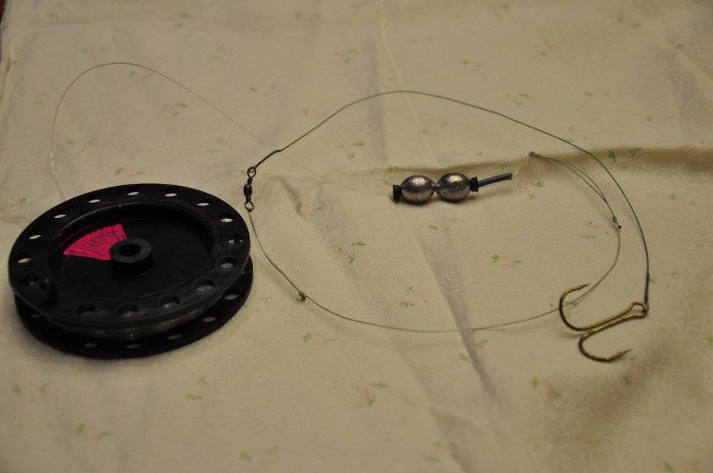 - оставить конец лески не намотанным, к нему прикрепить поводок вместе с крючком;