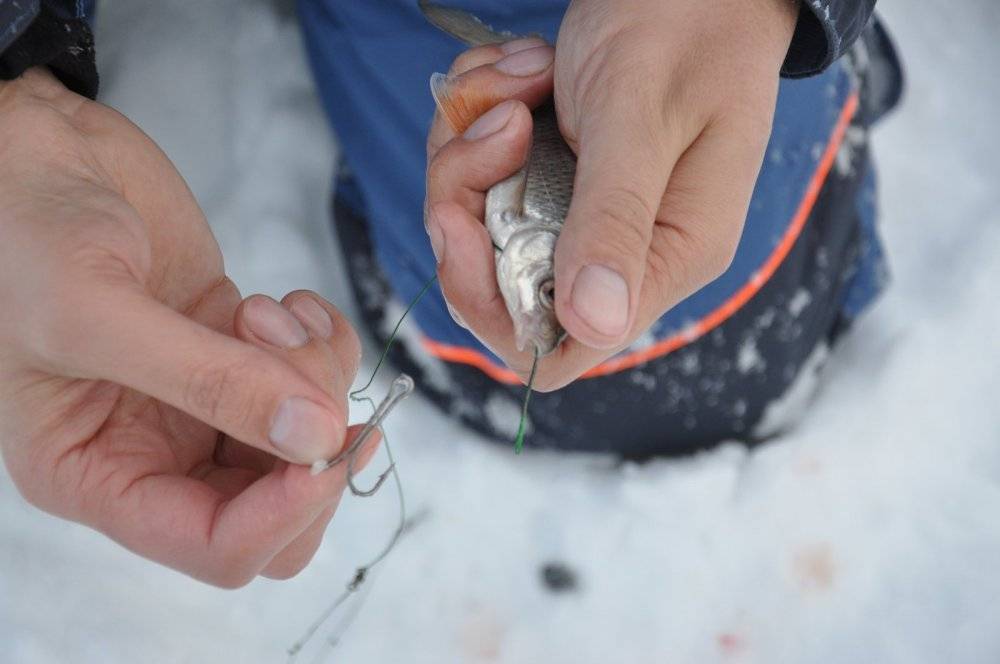 Нужно помнить, что красноперку и плотву необходимо насаживать особенным способом (через жабры)