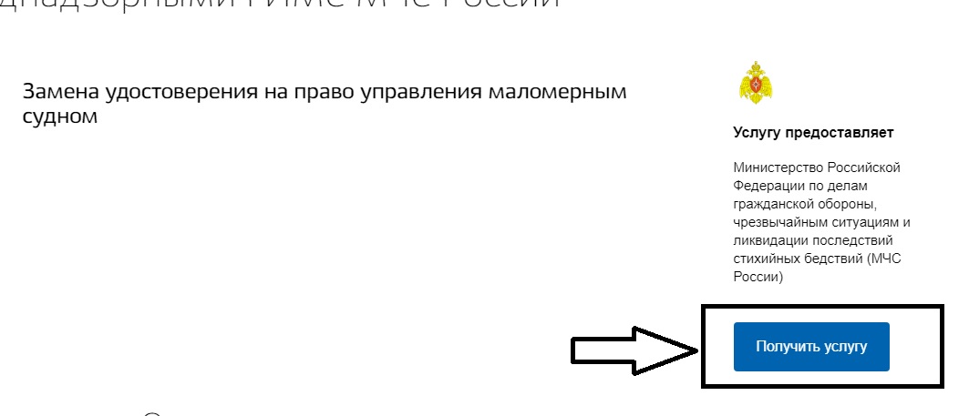 Затем из всех представленных на странице услуг выбрать «Удостоверение на право управления маломерным судном ГИМС МЧС России». В данной категории предоставляются услуги по выдаче и замене удостоверений.