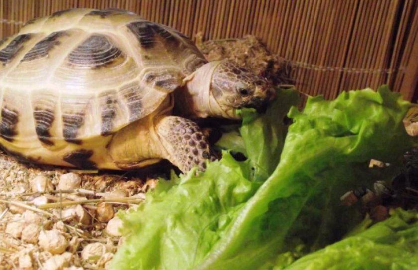 Травоядные виды рептилий употребляют пищу растительного происхождения. 70–80% их рациона составляют листья салата и одуванчика, капустные листья.