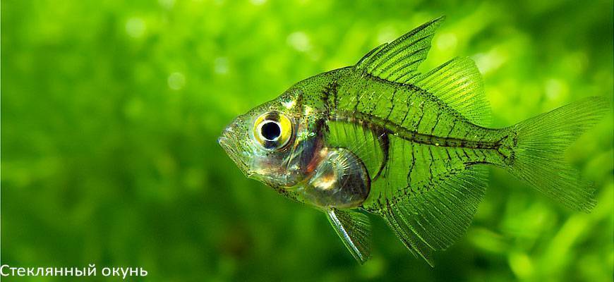 Стеклянный окунь – аквариумная рыбка. Он очень необычен и выделяется среди других обитателей прозрачностью своего тела. этой рыбки позволяет рассмотреть внутренности и косточки. Именно поэтому ее назвали “окунь стеклянный”. Действительно, сквозь маленькое тельце видно все, как через стекло. Ухаживать за окуньком в аквариуме совсем не сложно, он довольно миролюбивый по отношению к соседям и сравнительно вынослив. Для того чтобы рыбка чувствовала себя комфортно, необходимо знать некоторые правила по уходу за ней.