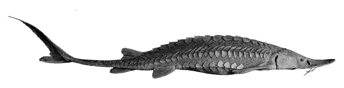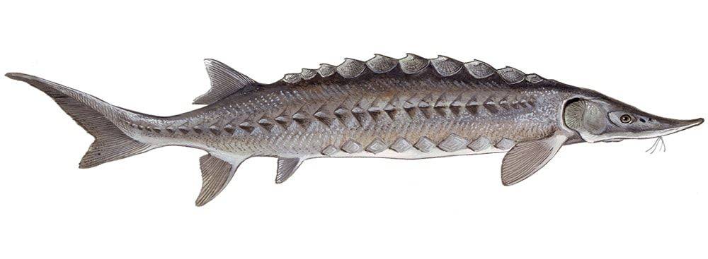 Яркий представитель семейства осетровых отличается самым вытянутым рылом приплюснутой формы. На его усиках нет бахромы, тело покрывают ряды жучков, звездчатые пластины.
