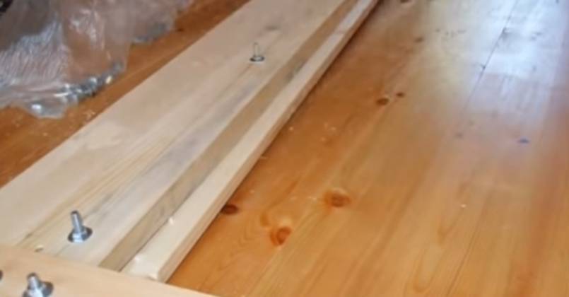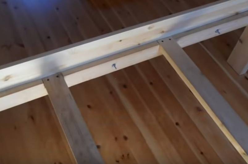 Шаг 4. К боковинам монтируются рейки, на которые будет опираться обрешетка. При этом, помимо метизов, рекомендуется использовать клеевое соединение (можно воспользоваться жидкими гвоздями). Это повысит прочность и минимизирует риск появления в будущем скрипа.