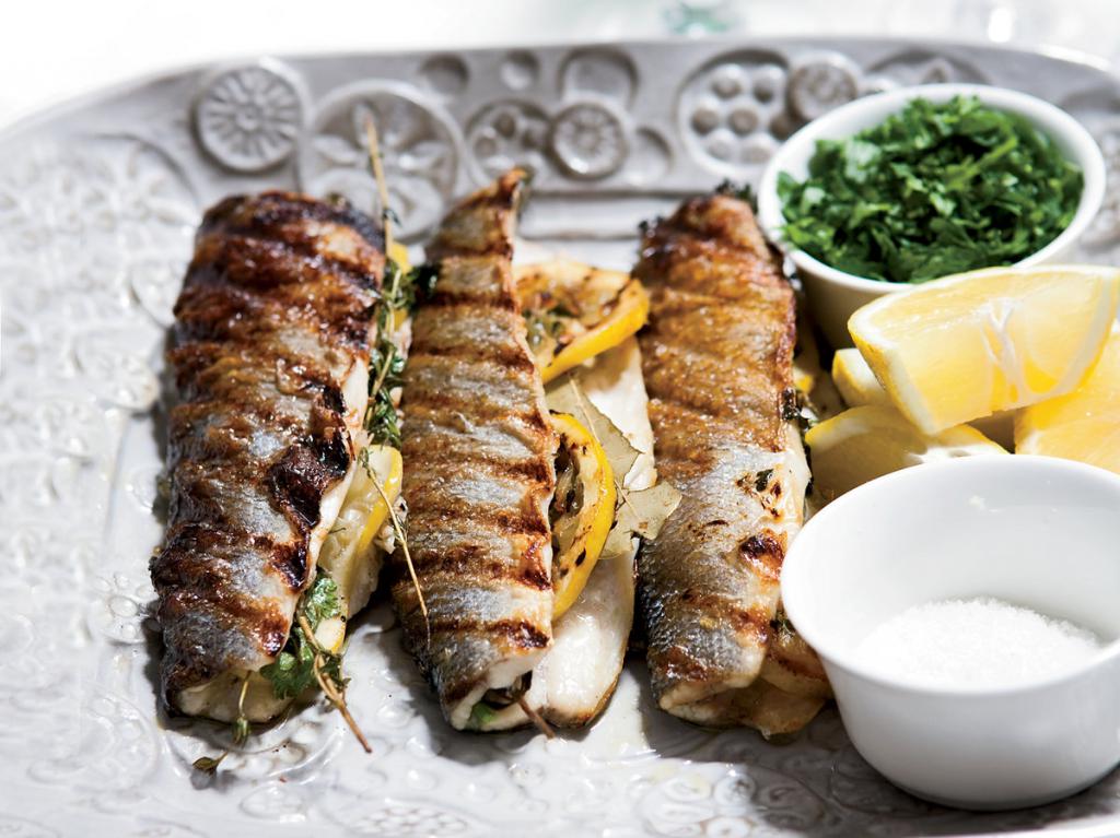 Еще одно хорошее решение для гриля – морской окунь. Это рыба с мягким белым мясом и отменными вкусовыми качествами. Чтобы блюдо получилось сочным, окуня лучше готовить целиком.