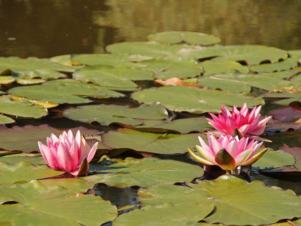 поверхности пруда лилии, моему восторгу не было предела. Говорят, нам повезло,