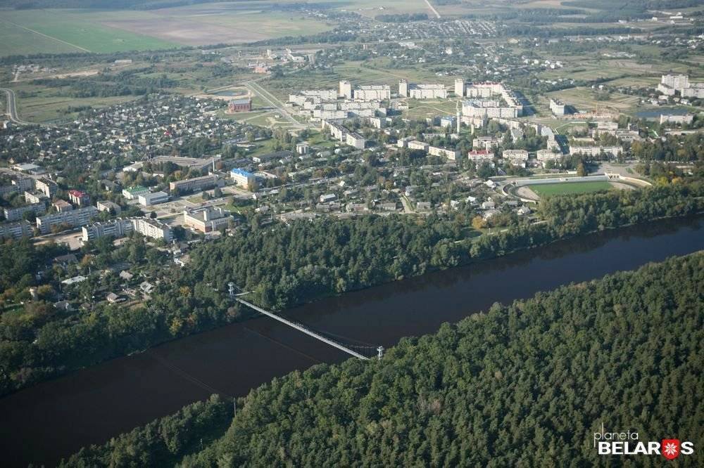 Там долгое время курсировал паром, с одного берега на другой без конца переплывали лодки, но в городе с таким названием нельзя было обойтись без мостов. В 1972-м там построили самый длинный пешеходный мост в Беларуси.